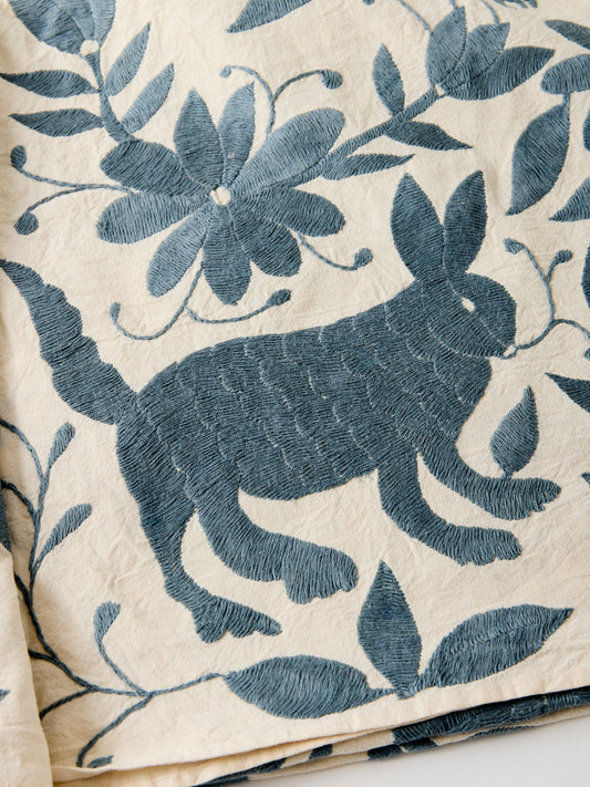 Hand-Embroidered Otomí Tablecloth – Indigo Grey