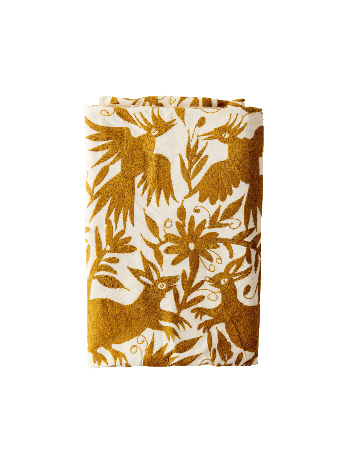 Each Otomí tablecloth is handcrafted in Hidalgo, Mexico, using centuries-old embroidery techniques passed down through generations. The delicate nature of this textile means a little extra care goes a long way in preserving its beauty.