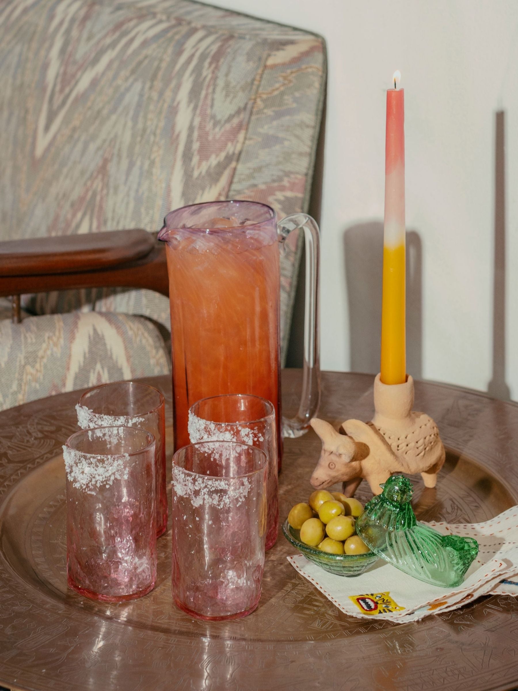 Celebrate the timeless artistry of hand-blown glass with the Large Spring Tumblers. Masterfully crafted in Oaxaca, their bold colors and striking design bring an elevated touch to any table setting. Functional yet effortlessly elegant, these tumblers pair beautifully with the Spring Pitcher to create a cohesive and refined look.