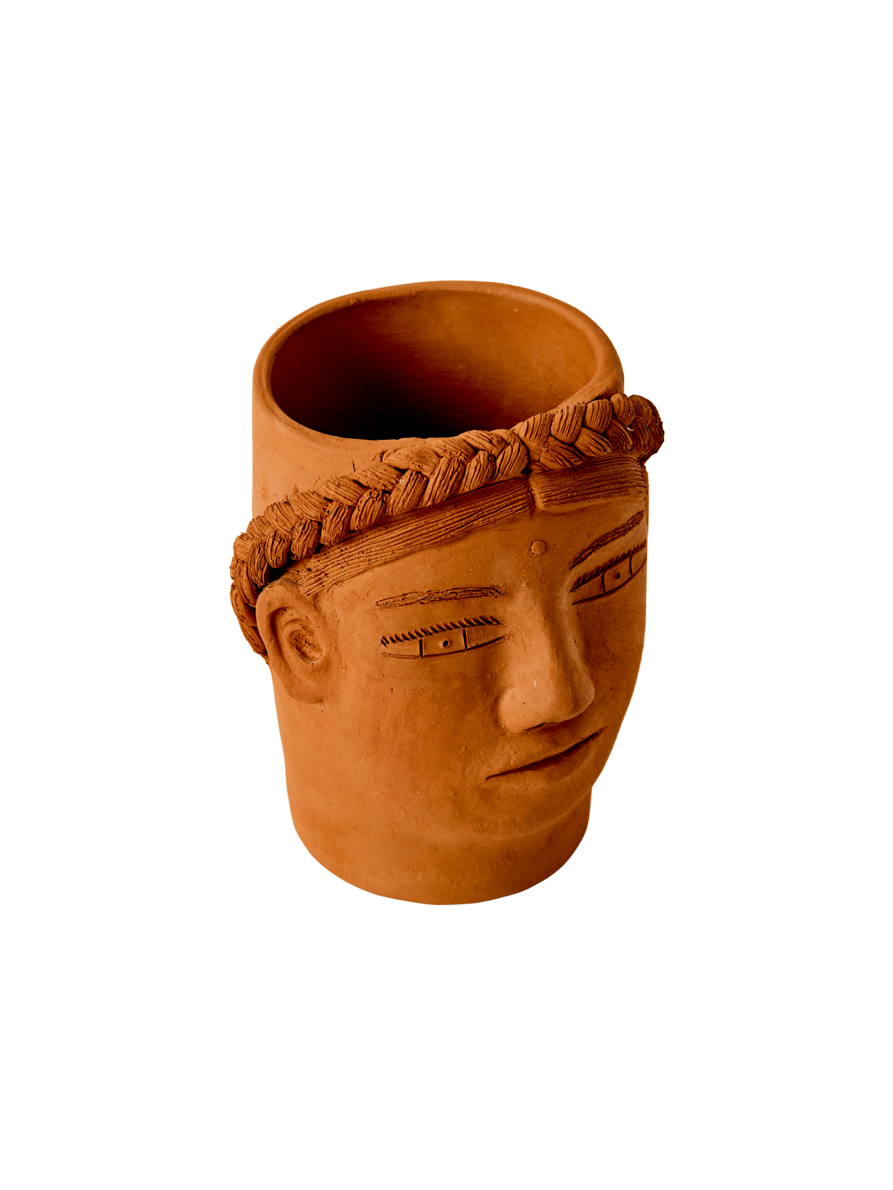 The Maceta Teresita is more than a planter—it’s a portrait in clay. Handmade by Taller Manos Que Ven, a family workshop in San Antonino Castillo Velasco, Oaxaca, this piece carries the warmth of barro rojo (red clay), a material deeply rooted in the region’s history.