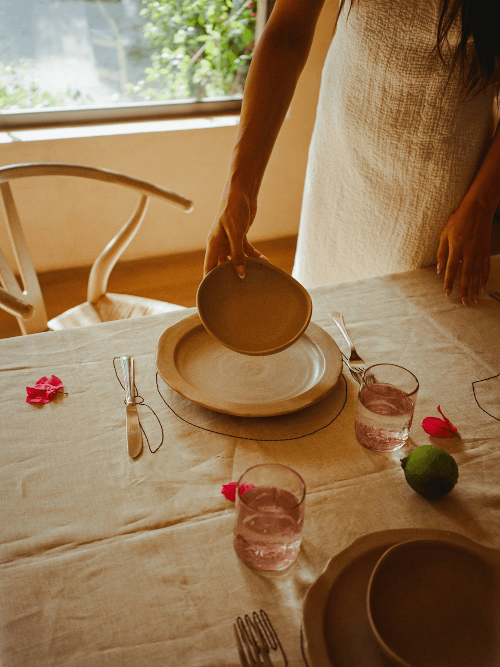 The journey of an Encrudo piece begins with the land itself. Natural, speckled stoneware clay is carefully sourced from local deposits, ensuring each plate, bowl, and cup carries the essence of Mexican soil. This intentional, small-batch approach results in pieces that feel warm, imperfectly perfect, and deeply connected to the craft of ceramics. No two are exactly alike, and each tells its own quiet story.